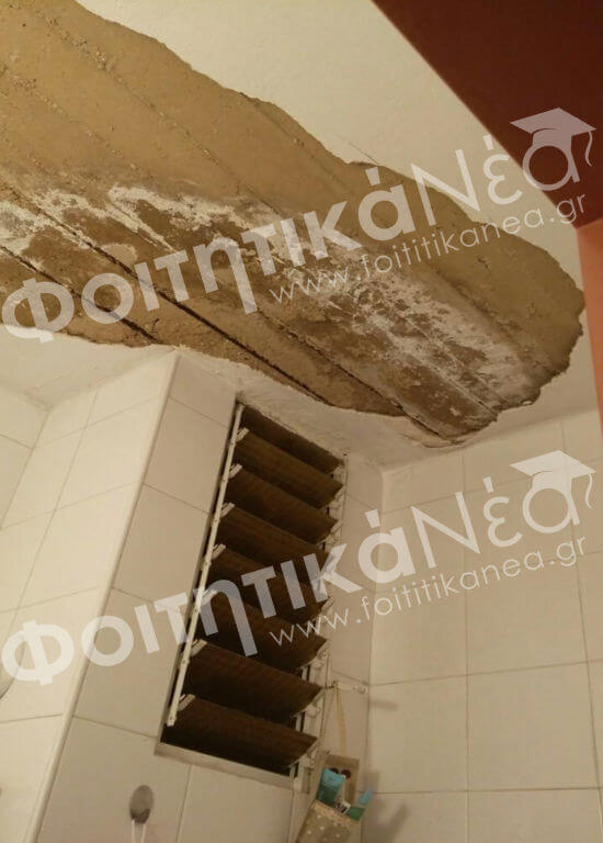 Συγκεκριμένα και όπως καταγγέλλει η παράταξη της Πανσπουδαστικής Κ.Σ, φοιτήτρια την ώρα που έκανε μπάνιο δέχτηκε… «επίθεση» από το ταβάνι που έπεσε πάνω της!