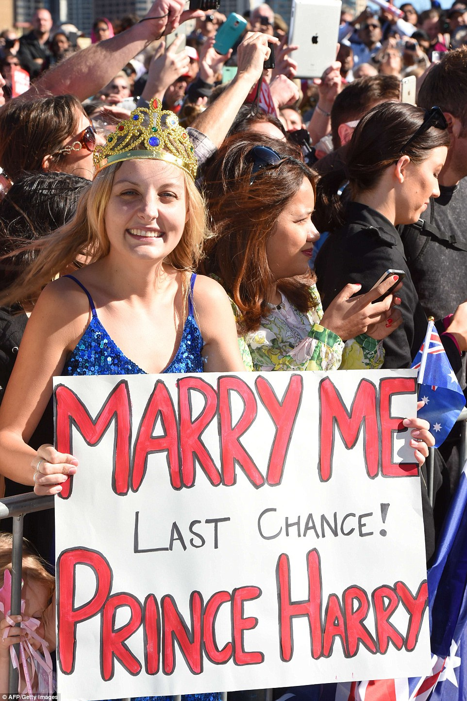 Ειδικότερα, η 21 ετών Victoria McRae κρατώντας ένα τεράστιο χαρτόνι στο οποίο είχε γράψει «παντρέψου με, τελευταία ευκαιρία» ζήτησε από τον Χάρι να την κάνει γυναίκα του.