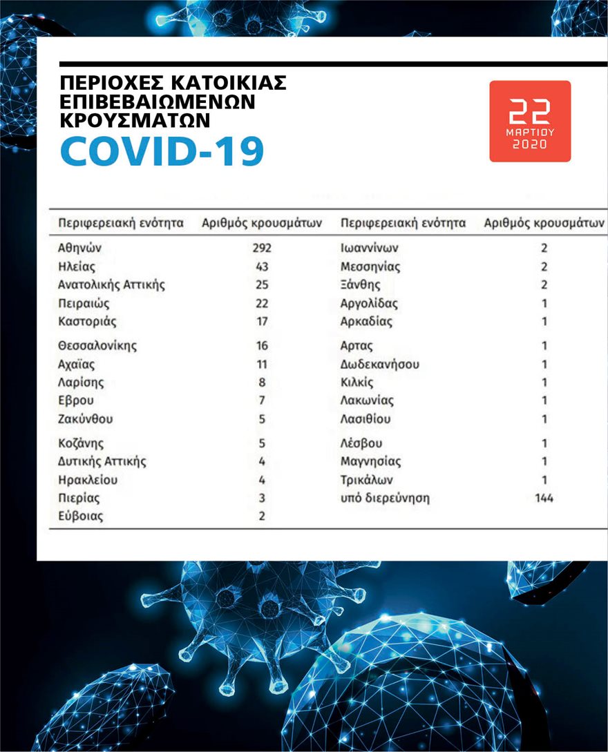 Σε ποια μέρη της Ελλάδας δεν υπάρχουν κρούσματα κορωνοϊού