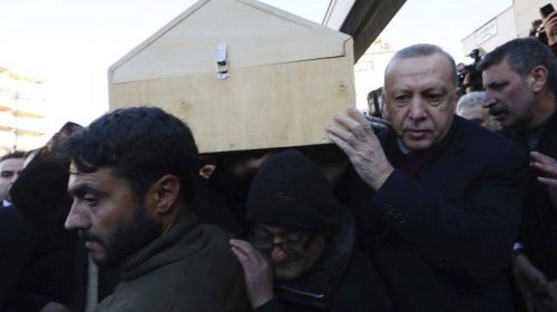 Μάλιστα, σαν φόρο τιμής, ο Τούρκος πρόεδρος σήκωσε στους ώμους του το φέρετρο.