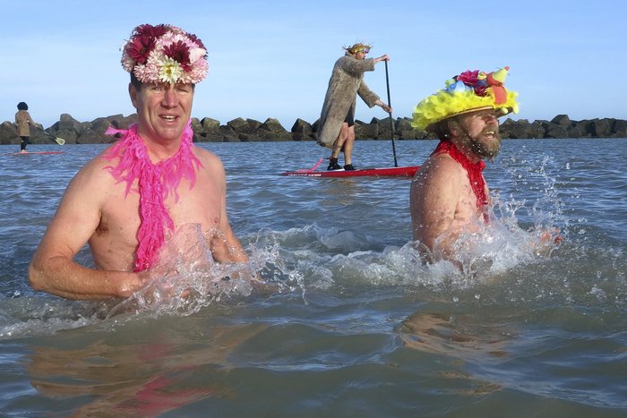 Πολλοί Γάλλοι πολίτες, κάθε χρόνο τέτοια μέρα, φοράνε μαγιό, αγιοβασιλιάτικες στολές ή κοστούμια που θυμίζουν απόκριες και βουτάνε στα παγωμένα νερά της Δουνκέρκης.
