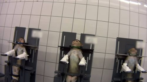 Τα ζώα σφαδάζουν από τους πόνους καθώς οι εργαζόμενοι στο εργαστήριο χρησιμοποιούν τσιμπίδες πάνω τους, τα κρατούν ακινητοποιημένα, τα αρπάζουν από τον λαιμό ενώ κάποια τα κρεμάνε ανάποδα.