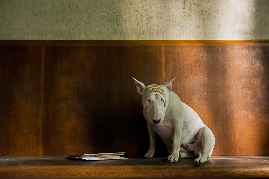 Η Κλερ είναι το μοντέλο της, ένα μπουλ τεριέ, που ποζάρει σε κάθε φόντο και την ακολουθεί σε κάθε εξερεύνηση.
