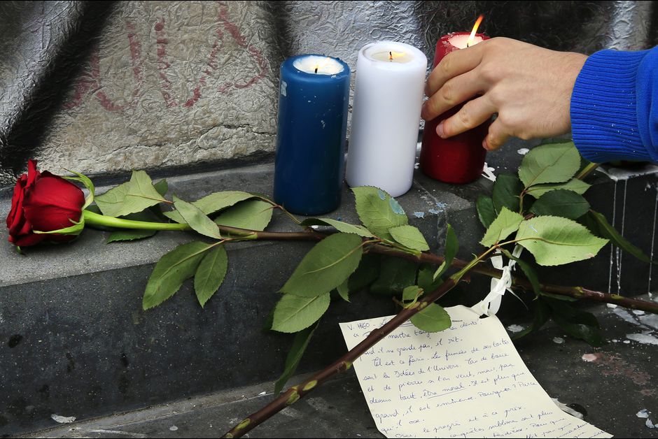 Η επόμενη ημέρα των επιθέσεων που προκάλεσαν τον θάνατο τουλάχιστον 127 ανθρώπων βρίσκει τη Γαλλία σε σοκ. Πολλοί κάτοικοι του Παρισιού εξέφρασαν την αλληλεγγύη τους αφήνοντας λουλούδια και κεριά στα σημεία του δράματος.