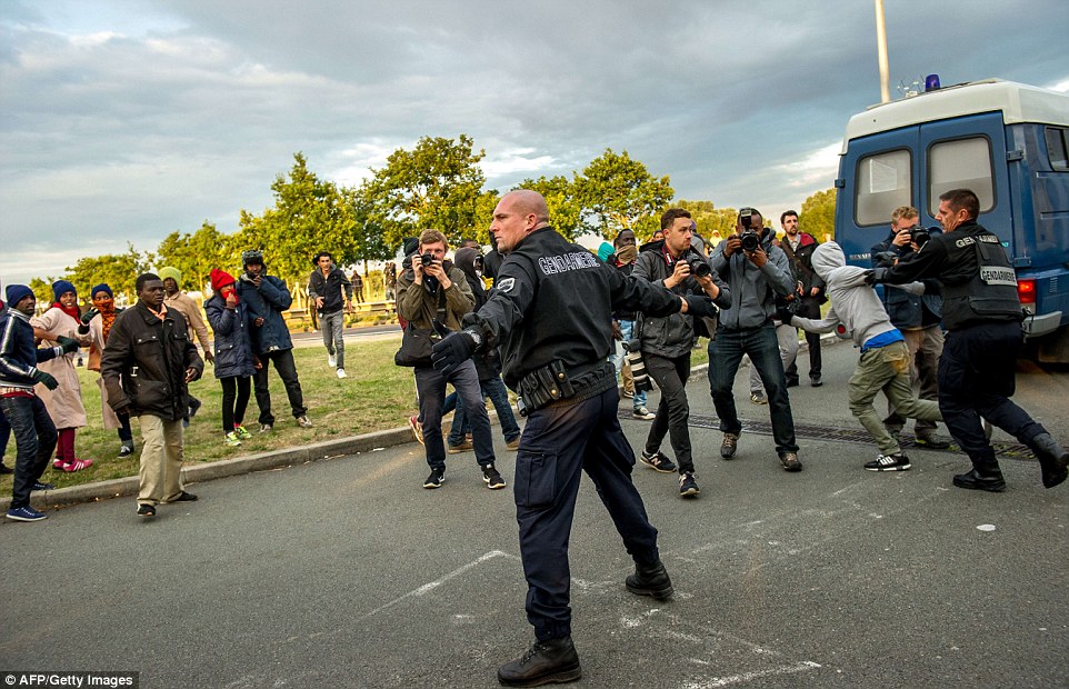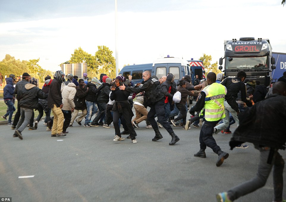 Χρησιμοποιώντας ακόμα και χρήση χημικών, προσπάθησαν να απωθήσουν το πλήθος την ώρα που αρκετοί μετανάστες έτρεχαν για να περάσουν το φράχτη του Eurotunnel. Αυτόπτες μάρτυρες περιέγραψαν τις σκηνές ως βγαλμένες από επεισόδια ποδοσφαιρικού αγώνα από την στιγμή που οι δυνάμεις της αστυνομίας πήραν εντολή για πιο δυναμική παρέμβαση.
