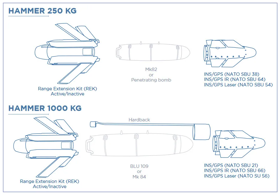 Η AASM Hammer (Armement Air-Sol Modulaire) είναι στην πραγματικότητα ένα αρθρωτό σύστημα. Πρόκειται για ένα έξυπνο κιτ καθοδήγησης και έναν προωθητικό πύραυλο που “κουμπώνουν” πάνω σε τυπικές, μη κατευθυνόμενες βόμβες των 250, 500 ή 1.000 κιλών, μετατρέποντάς τες σε όπλα ακριβείας.