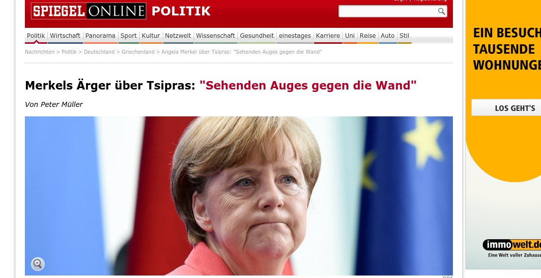 Το δημοσίευμα τονίζει πως η κ. Μέρκελ δεν έκρυψε τον εκνευρισμό της για τον κ. Τσίπρα.