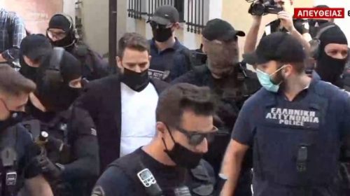 Ο 32χρονος Μπάμπης Αναγνωστόπουλος μεταφέρθηκε φορώντας αλεξίσφαιρο γιλέκο, ενώ ήταν δεμένος πισθάγκωνα. Ανέκφραστος μεταφέρθηκε συνοδεία των αστυνομικών.