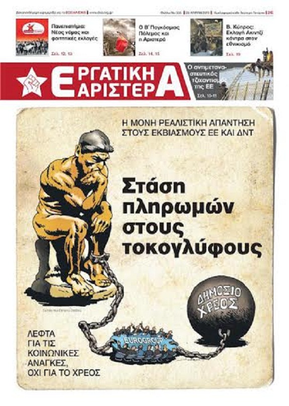 Το πρωτοσέλιδο της «Εργατικής Αριστεράς»