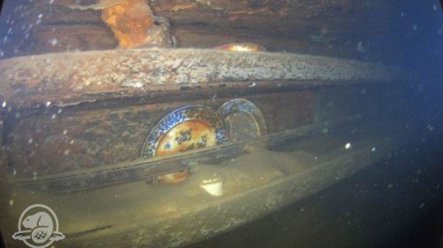 Οι εικόνες που τράβηξαν οι δύτες και ένα υποθαλάσσιο, τηλεχειριζόμενο ρομπότ αποκαλύπτουν ανέπαφα αντικείμενα από τη ζωή στο πλοίο, το κουφάρι του οποίου βρέθηκε το 2016 σε βάθος 24 μέτρων στα ανοιχτά του νησί του Βασιλιά Γουλιέλμου, στα ανατολικά του Κόλπου Κέμπριτζ.