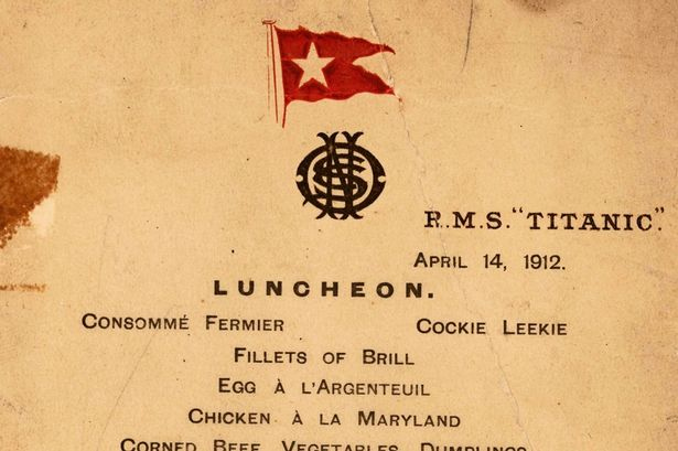 Το βρετανικό επιβατηγό υπερωκεάνιο βυθίστηκε στον Βόρειο Ατλαντικό Ωκεανό στις 15 Απριλίου 1912 μετά από σύγκρουση με ένα παγόβουνο κατά το παρθενικό ταξίδι του από το Σαουθάμπτον προς τη Νέα Υόρκη. Το τελευταίο γεύμα, μία ημέρα πριν από τη ναυτική τραγωδία, περιελάμβανε παστό βοδινό, ζυμαρικά και λαχανικά.