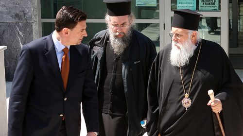Στο Δικαστικό Μέγαρο κατέφθασε το μεσημέρι ο Μητροπολίτης Κερκύρας Παξών και Διαποντίων Νήσων Νεκτάριος, για να παρουσιαστεί και να καταθέσει ενώπιον του Εισαγγελέα στο πλαίσιο της αυτόφωρης διαδικασίας.