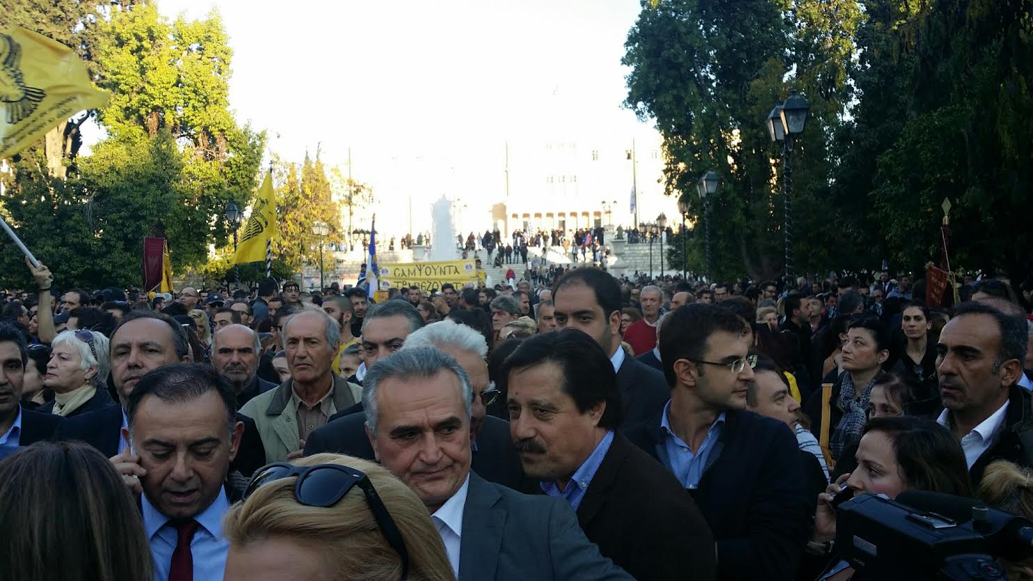 Στην συγκέντρωση διαμαρτυρίας βρίσκονται και αρκετοί βουλευτές όπως οι Μιχελογιαννάκης, Νικολόπουλος και η Αννα Καραμανλή, ενώ το κέντρο παραμένει αυτή την ώρα κλειστό.