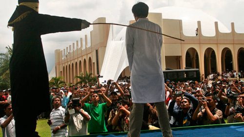 Διαβεβαιώνοντας πως εξασφαλίζονταν πλήρως οι κανόνες για την τήρηση της κοινωνικής απόστασης, που ισχύουν αυστηρά σε αυτήν την περίοδο της πανδημίας, οι αρχές της επαρχίας που βρίσκεται στη βόρειο άκρη της νήσου Σουμάτρας, απέδειξαν πως δεν προτίθενται να υποχωρήσουν στο ελάχιστο όσον αφορά τις ποινές που απορρέουν από τις απόλυτες επιταγές του ισλαμικού θρησκευτικού νόμου της σαρίας.