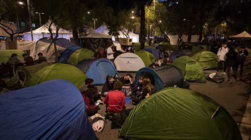 Εκατοντάδες νέοι κατασκήνωσαν στο κέντρο της πρωτεύουσας της Καταλονίας σε ένδειξη διαμαρτυρίας