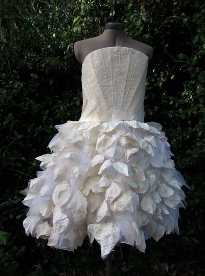 Η καλλιτέχνης Ντόνα Φράνκλιν δημιούργησε αυτό το άσπρο φόρεμα με υλικό από τη βακτηριακή ζύμωση για τη δημιουργία μπύρας.
