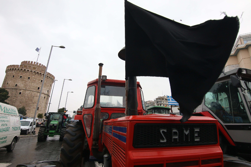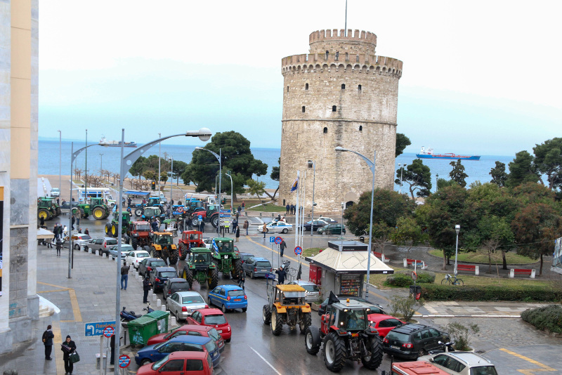 Τα τρακτέρ μπροστά στον Λευκό Πύργο