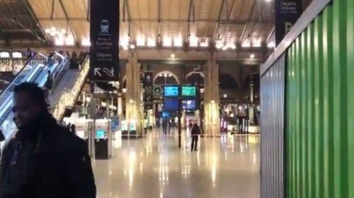 Φωτογραφίες σε μέσα κοινωνικής δικτύωσης έδειξαν εκατοντάδες ανθρώπους να έχουν συγκεντρωθεί στον προαύλιο χώρο του σιδηροδρομικού σταθμού, που εξυπηρετεί καθημερινά 700.000 ταξιδιώτες.