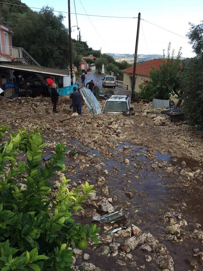 Στην Κεφαλονιά τόνοι λάσπης προξένησαν μεγάλες καταστροφές στο χωριό Νύφι. Σύμφωνα με πληροφορίες από την περιοχή, μεγάλες ποσότητες, λάσπης, μπαζών και κομμένων ξύλων παρασύρθηκαν μέσα στο χωριό με αποτέλεσμα να θάψουν αυτοκίνητα και παλιά σπίτια, ενώ παρέσυραν και ζώα που βρέθηκαν δεκάδες μέτρα μακριά, δυστυχώς νεκρά.