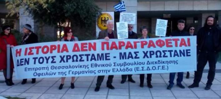 Παράσταση διαμαρτυρίας μπροστά στο Γερμανικό Προξενείο της Θεσσαλονίκης, πραγματοποίησε η Τοπική Επιτροπή Εθνικού Συμβουλίου Διεκδίκησης Οφειλών της Γερμανίας στην Ελλάδα (ΕΣΔΟΓΕ).