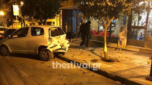 Αρχικά, το αυτοκίνητο έπεσε πάνω σε παρκαρισμένα οχήματα, ενώ ξήλωσε και προστατευτικά κολωνάκια, στη συμβολή των οδών Καθ. Κεραμοπούλου και Σ. Τάττη, στο κέντρο της Θεσσαλονίκης, το βράδυ της Δευτέρας.