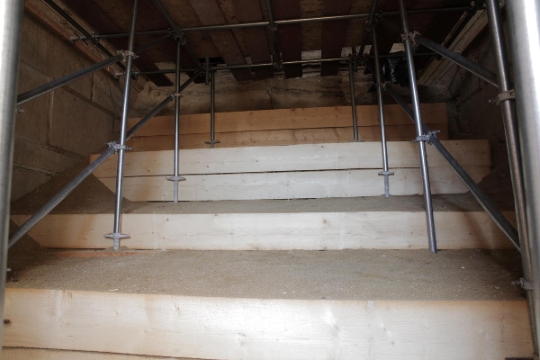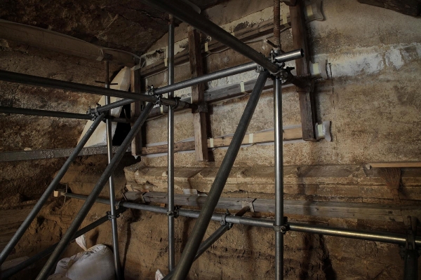 -Κατασκευή επιπέδου εργασίας, με πλάκες κόντρα-πλακέ, επί του πρώτου διαμερίσματος, στο επίπεδο του επιστυλίου , για την ασφαλή πρόσβαση και την λεπτομερή εγγύς παρατήρηση και επιθεώρηση της θόλου του πρώτου θαλάμου αλλά και για την ασφάλεια των εργαζομένων.