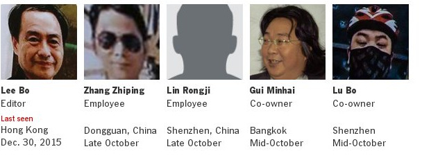 Οι πέντε άνθρωποι που εξαφανίστηκαν εργάζονταν για τον οίκο Mighty Current, ο οποίος είναι γνωστός στο Χονγκ Κονγκ –τη βρετανική αποικία η κυριαρχία της οποίας πέρασε από την Βρετανία στην Κίνα το 1997– για τα όχι και τόσο φιλικά βιβλία του απέναντι στην κινεζική κυβέρνηση. Όπως πιστεύεται, οι πέντε εξαφανισθέντες βρίσκονται στα χέρια των κινεζικών αρχών.