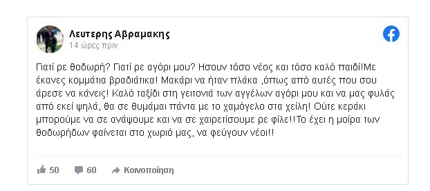 Την είδηση ανακοίνωσε το βράδυ του Σαββάτου o βουλευτής Σερρών, Λευτέρης Αβραμάκης, μέσω Facebook.