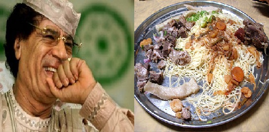 Του άρεσαν τα ιταλικά μακαρόνια και γλυκά. Αλλά προτίμησε έδειχνε στο κρέας καμήλας, το κουσκούς και τα δαμάσκηνα.