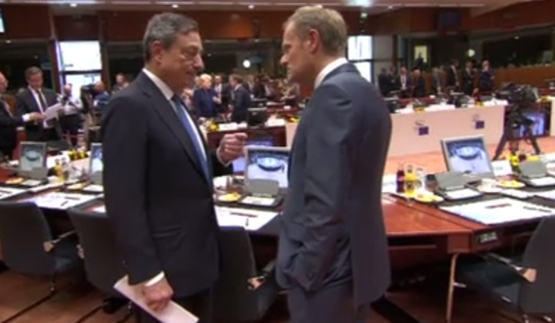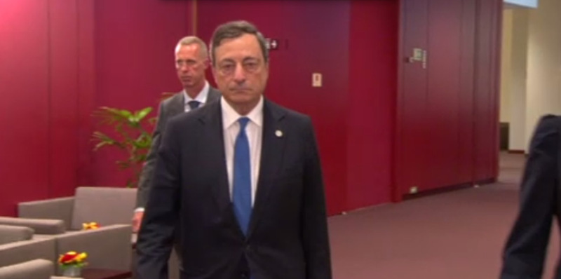 Ανέκφραστος και αγέλαστος ήταν ο Μάριο Ντράγκι όπως καταγράφεται σε αρκετά καρέ από τα παρασκήνια της Συνόδου.