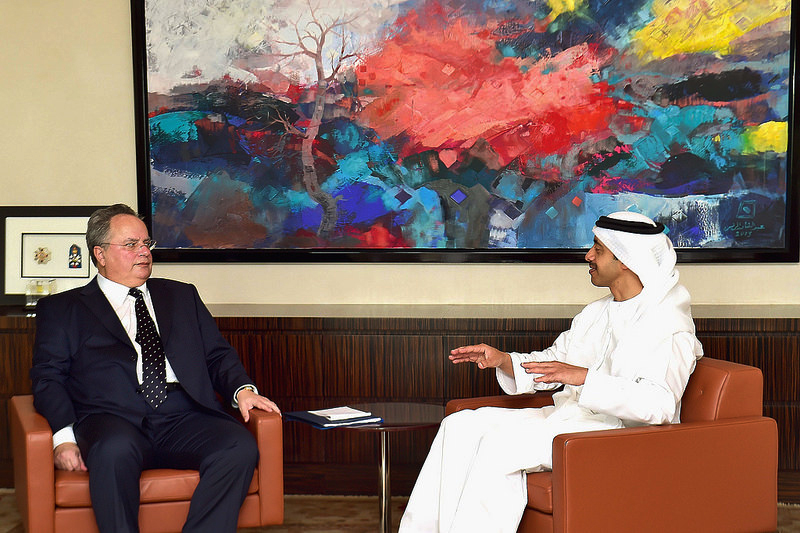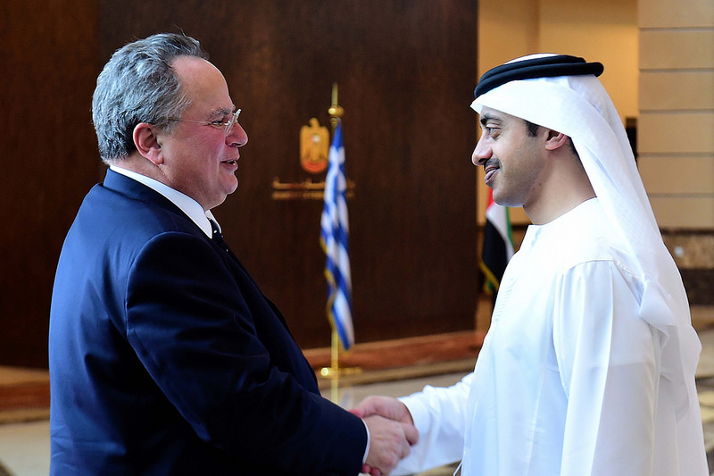 Σε ιδιαίτερα θερμό κλίμα πραγματοποιήθηκε η συνάντηση του υπουργού Εξωτερικών, Νίκου Κοτζιά με τον υπουργό Εξωτερικών των Ηνωμένων Αραβικών Εμιράτων, Σεΐχη Abdullah bin Zayed Al Nahyan, στο Αμπού Ντάμπι.