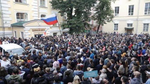 Περίπου 350 διαδηλωτές έλαβαν μέρος στην διαδήλωση που έγινε χωρίς την άδεια των αρχών στο κέντρο της Μόσχας.