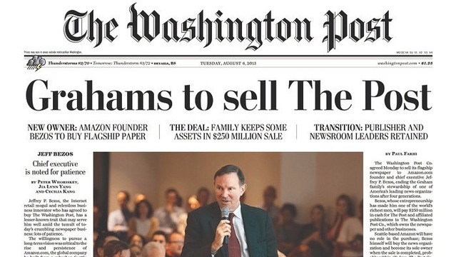 Το 2013 η οικογένεια Graham πούλησε τον φημισμένο τίτλο Washington Post στον Τζεφ Μπέζο του amazon, ο οποίος έχει δείξει ήδη τις διαθέσεις του για την νέα εποχή στην οποία οδηγεί τη εφημερίδα, με 150 νέες προσλήψεις δημοσιογράφων, επενδύσεις στις νέες τεχνολογίες και ενίσχυση της διαδικτυακής παρουσίας της εφημερίδας.
