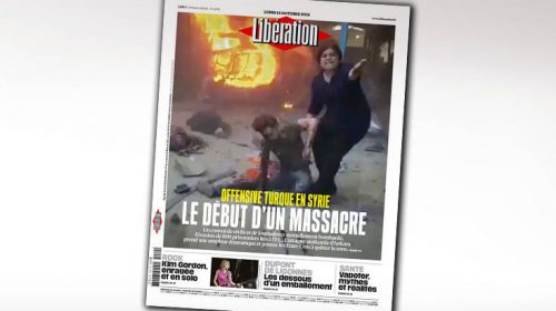Μια σοκαριστική εικόνα από τη Συρία, όπου είναι σε εξέλιξη η τουρκική στρατιωτική επιχείρηση, καλύπτει ολόκληρο το πρωτοσέλιδό της γαλλικής εφημερίδας Libération.