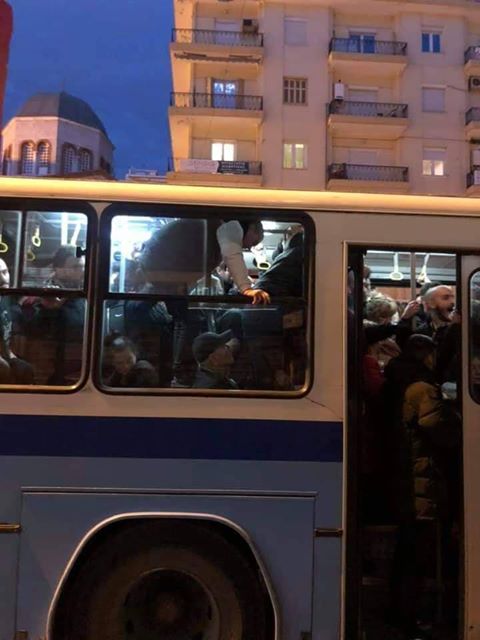Επιβάτες στοιβάζονται κυριολεκτικά ο ένας πάνω στον άλλο, σαν σαρδέλες, στο λεωφορείο της γραμμής 2Κ», το οποίο εκείνη την ώρα βρίσκεται στην Εγνατία, στην περιοχή της Καμάρας.