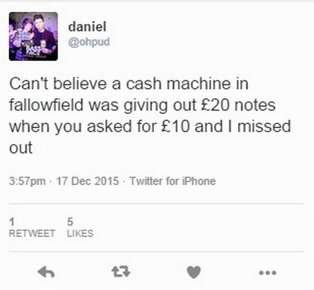 Σύμφωνα με την Mirror οι υπεύθυνοι του καταστήματος είπαν πως το μηχάνημα υπέστη μια βλάβη με αποτέλεσμα να διπλασιάζει τη ποσότητα των μετρητών που ζητούσαν οι πελάτες. Ετσι αν κάποιος για παράδειγμα ζητούσε να κάνει ανάληψη 10 λιρών το μηχάνημα του έβγαζε 20 λίρες.