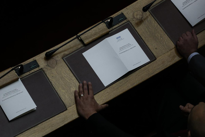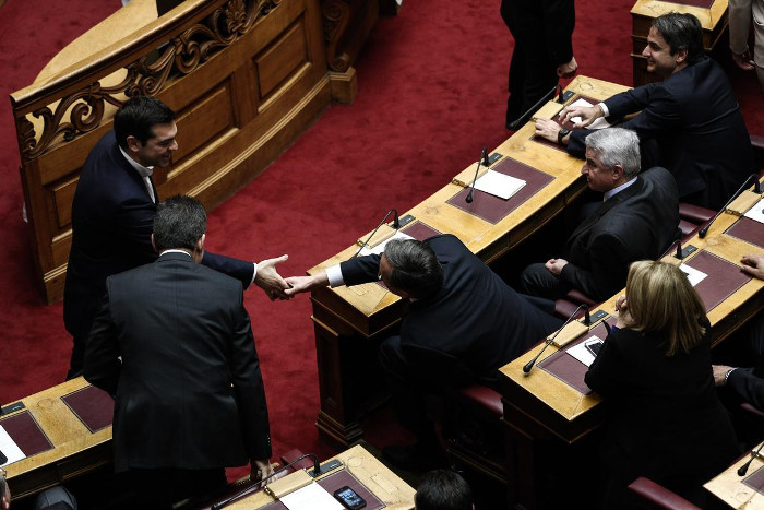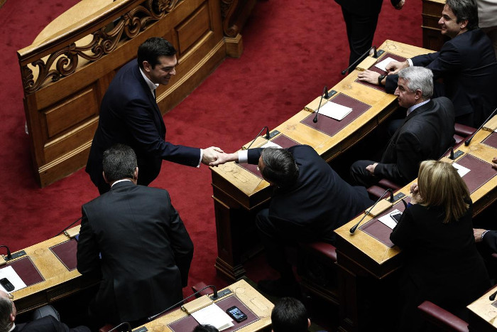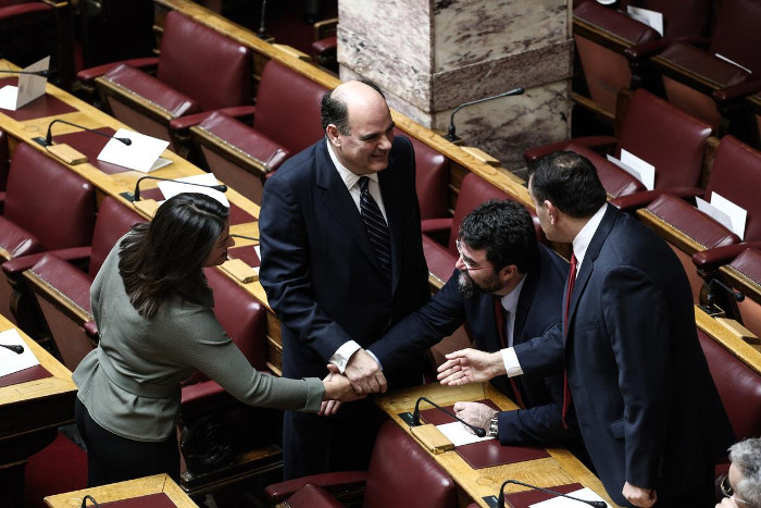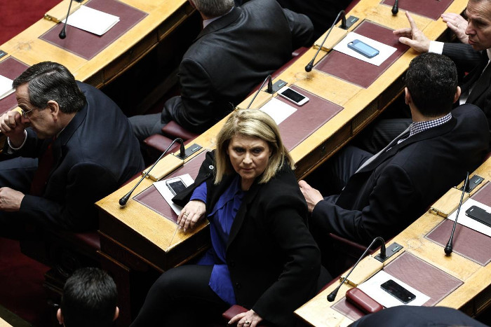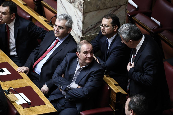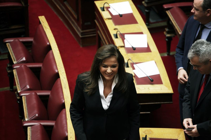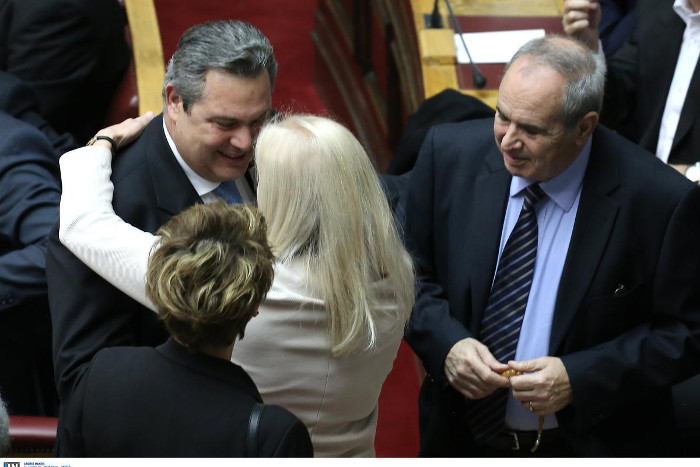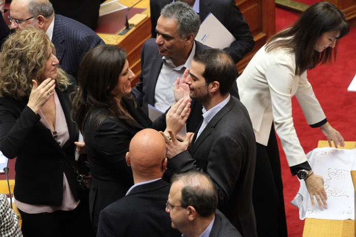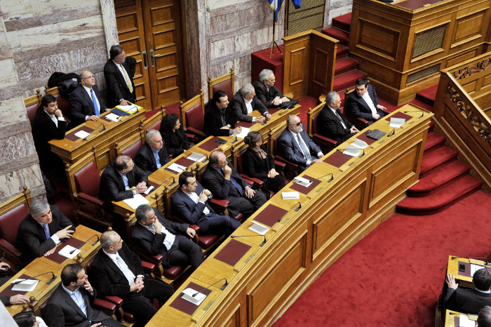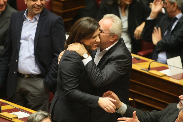 Η προτεινόμενη από τον ΣΥΡΙΖΑ για το αξίωμα του προέδρου της Βουλής Ζωή Κωνσταντοπούλου κάθισε στα πρώτα βουλευτικά έδρανα, έχοντας δίπλα της τους υπουργούς Εσωτερικών και Διοικητικής Μεταρρύθμισης Νίκο Βούτση και Παραγωγικής Ανασυγκρότησης Παναγιώτη Λαφαζάνη.
