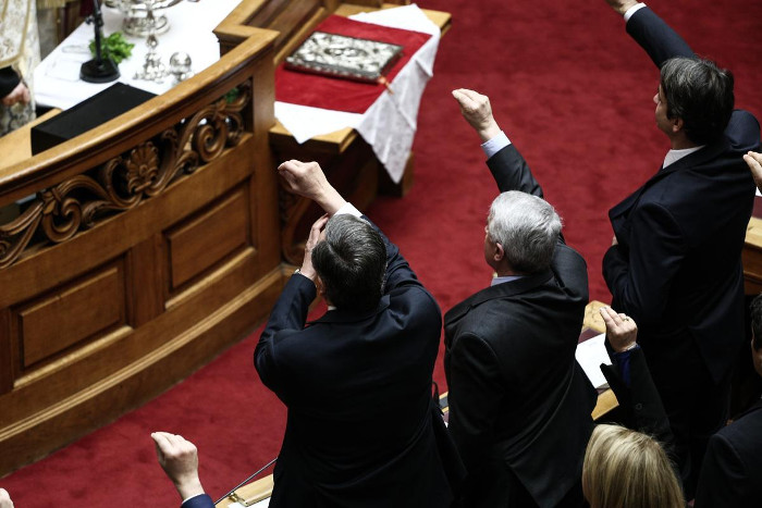 Οι βουλευτές από τη ΝΔ, τη Χρυσή Αυγή, το ΠΑΣΟΚ, καθώς και όλη η Κοινοβουλευτική Ομάδα των ΑνΕλ μαζί με ορισμένους βουλευτές από το Ποτάμι, έδωσαν θρησκευτικό όρκο.