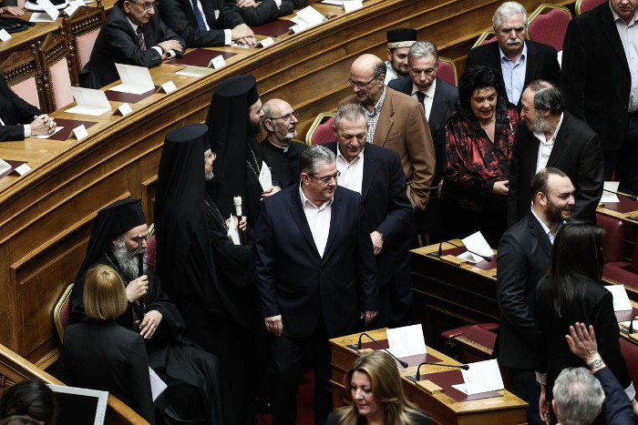 Πολιτικό όρκο έδωσαν επίσης οι βουλευτές του ΚΚΕ και ο πρόεδρος του Ποταμιού μαζί με τους περίπου μισούς βουλευτές του.