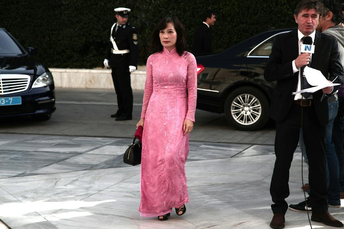 Στα θεωρία βρέθηκαν και 87 πρεσβευτές που εκπροσώπησαν τις χώρες τους. Κάποιοι από αυτούς μάλιστα, έστρεψαν πάνω τους τα βλέμματα κατά την εισοδό τους στη Βουλή όπως η κυρία με το εντυπωσιακό ροζ κιμονό.