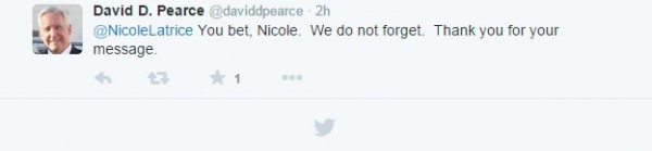 Για να λάβει την άμεση απάντηση του κ.Πίρς: «Να είσαι σίγουρη Νικόλ. Δεν ξεχνάμε. Ευχαριστώ για το μήνυμά σου».