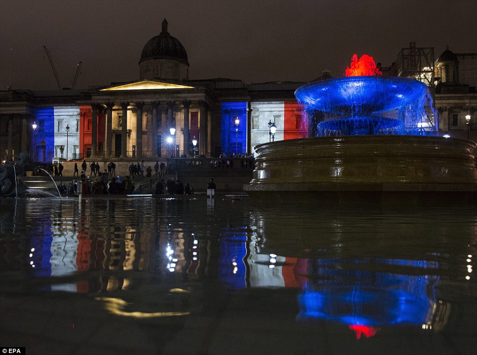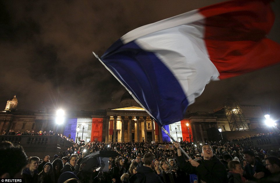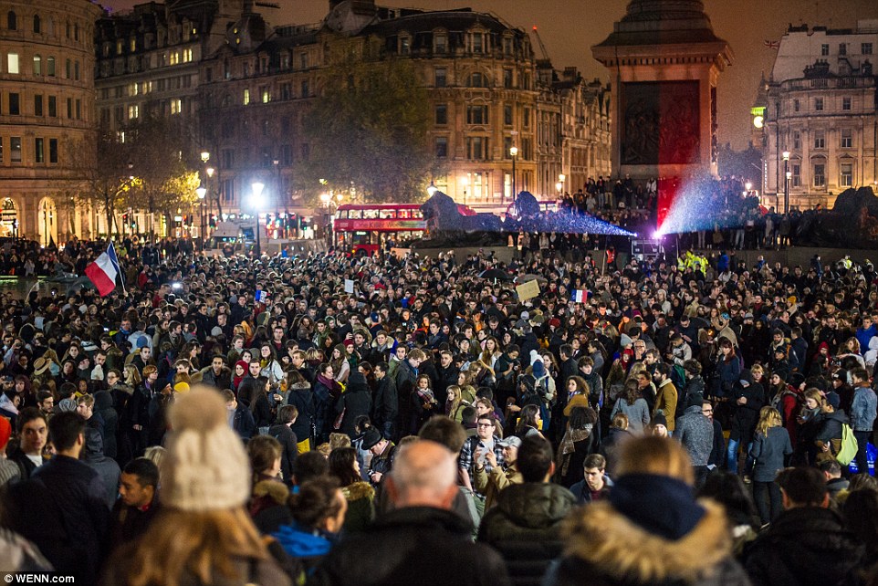 Στην πλατεία Τραφαλγκάρ συγκεντρώθηκαν χιλιάδες Άγγλοι πολίτες σε μια κίνηση συμπαράστασης στη Γαλλία, μετά τις τρομοκρατικές επιθέσεις τη νύχτα της Παρασκευής στο Παρίσι.