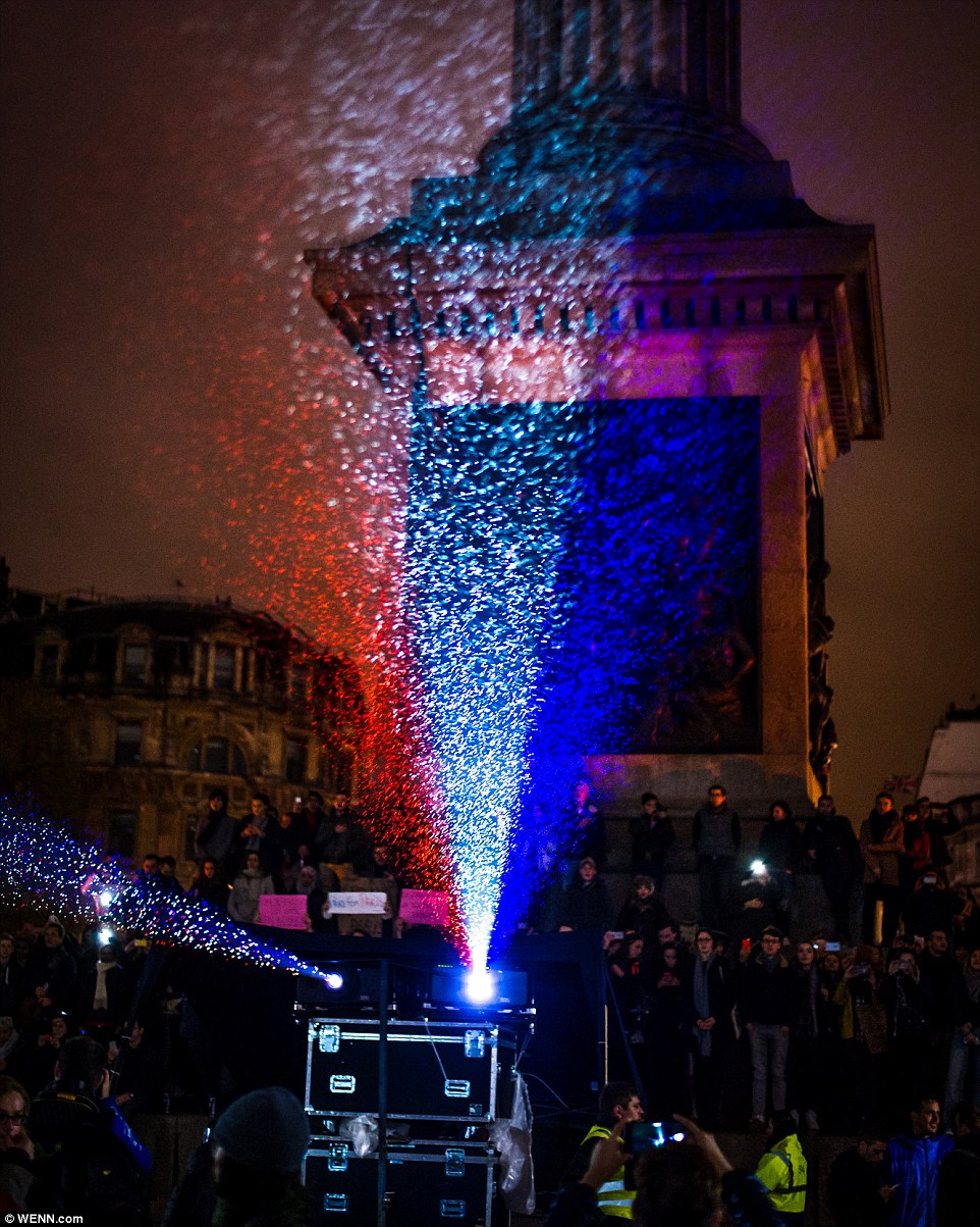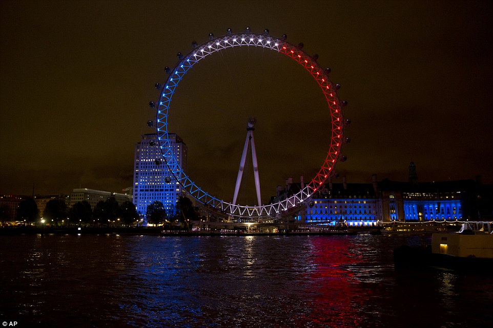 Κρατώντας ψηλά τα κινητά τους τηλέφωνα ώστε η αγγλική πόλη να θυμίζει κάτι από την Πόλη του Φωτός, σημαίες της Γαλλίας και πανό συμπαράστασης, οι Αγγλοι θέλησαν με αυτόν τον τρόπο να στείλουν ένα μήνυμα συμπαράστασης καθώς και ένα μήνυμα ενάντια στην τρομοκρατία.
