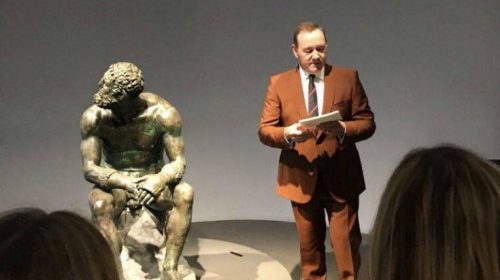Ο ηθοποιός εξέπληξε τους επισκέπτες του Εθνικού Μουσείου της Ρώμης όταν απήγγειλε ένα ποίημα του Ιταλού Γκαμπριέλε Τίντι δίπλα στο άγαλμα ενός πυγμάχου.