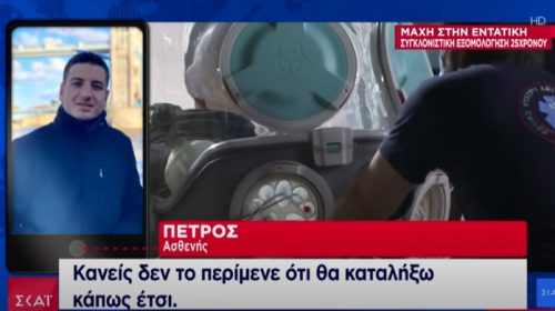 «Από τη μια στιγμή στην άλλη» βρέθηκε διασωληνωμένος με κορωνοϊό στην εντατική ο 25χρονος Πέτρος, χωρίς, μάλιστα, να έχει «το παραμικρό υποκείμενο νοσήμα».