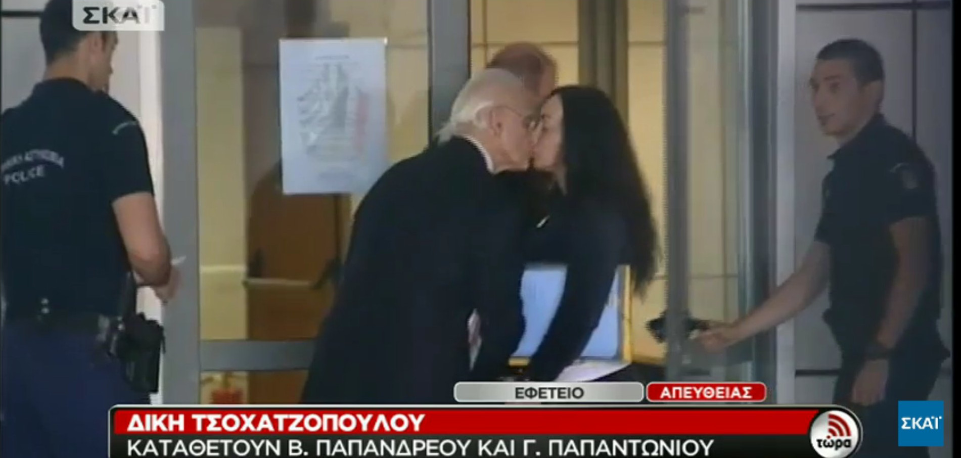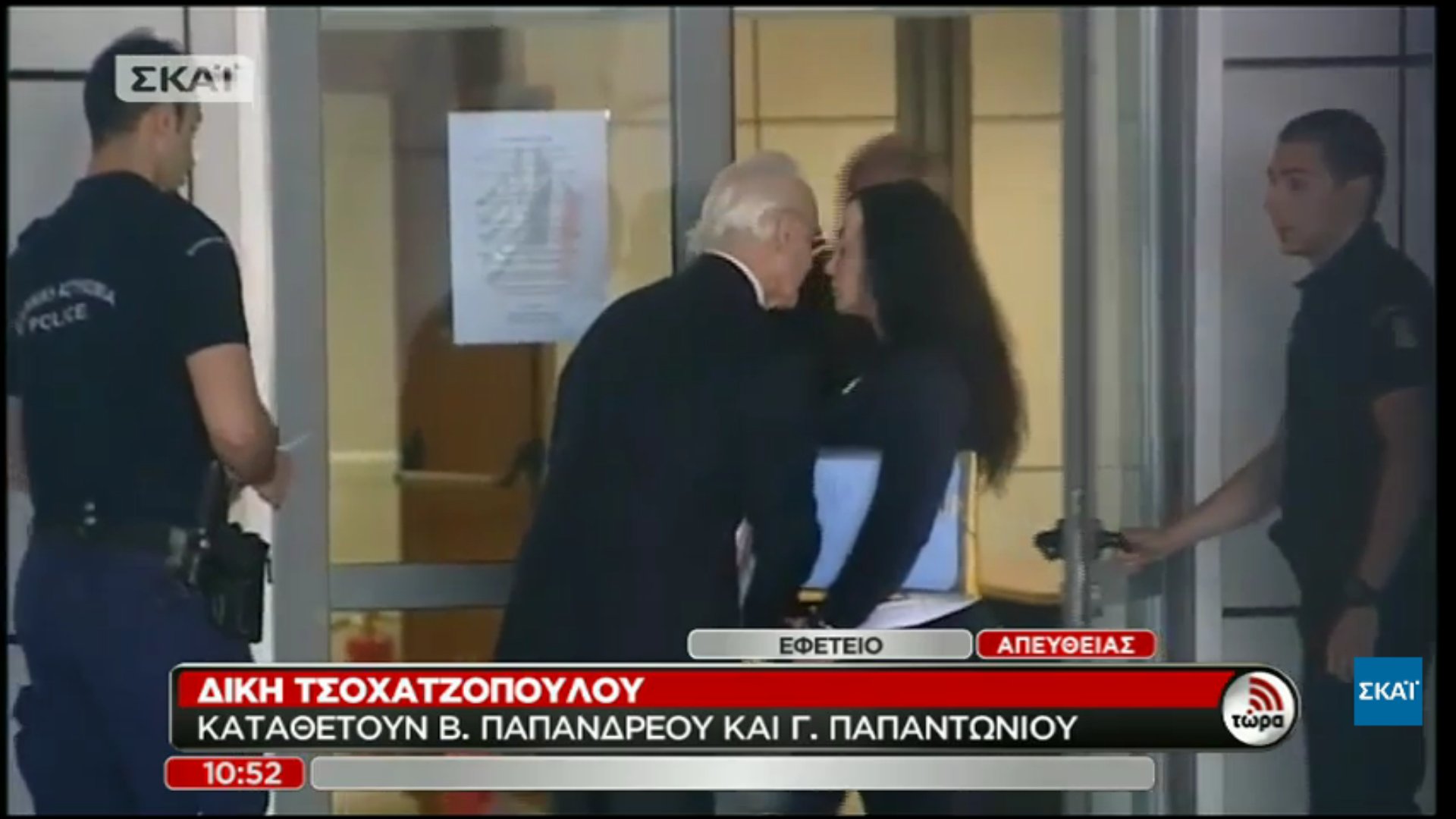 Βάσω Παπανδρεου και Γιάννος Παπαντωνίου καταθέτουν σήμερα στη πολύκροτη δίκη και πριν μπουν στην αίθουσα του δικαστηρίου για την έναρξη της δίκης συναντήθηκαν ο Ακης Τσοχατζόπουλος με την Βίκυ Σταμάτη.