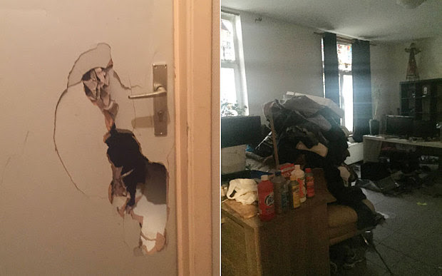 Παρά το γεγονός ότι το πρωί του Σαββάτου δεν υπήρχε αστυνομική παρουσία στην περιοχή, η σπασμένη πόρτα του διαμερίσματος με την τεράστια τρύπα αποδεικνύει τη βίαια είσοδο των αστυνομικών. Οι εικόνες από το διαμέρισμα δεν διαφέρουν πολύ. Τα πάντα είναι ανάστατα, ενώ σύμφωνα με τον δημοσιογράφο της βρετανικής εφημερίδας, οι αστυνομικές δυνάμεις αναποδογύρισαν τα έπιπλα και άδειασαν όλα τα ντουλάπια.