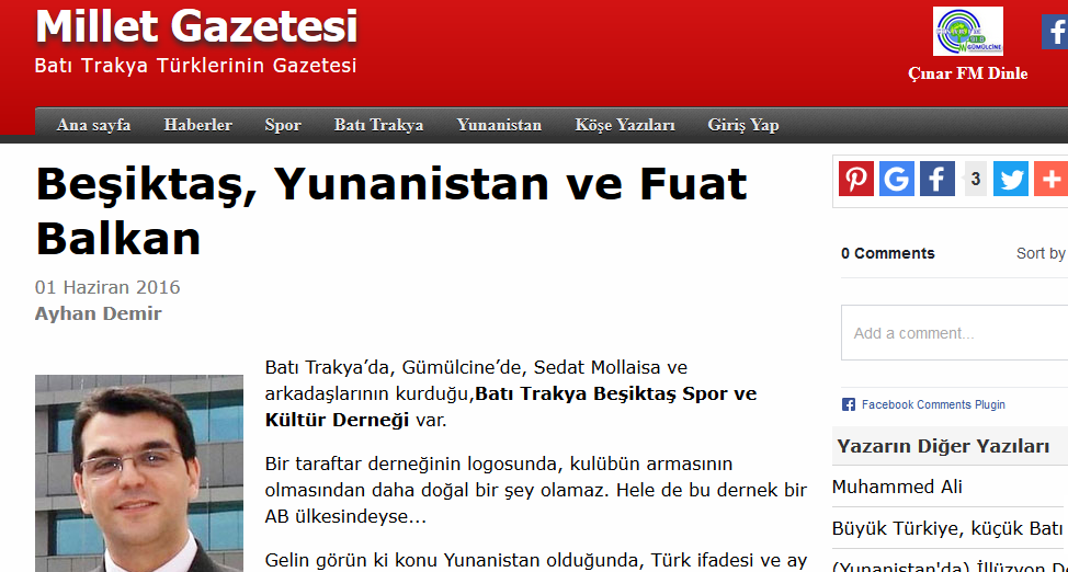Το θέμα είναι ότι τα …βαθυστόχαστα άρθρα του συγκεκριμένου αρθρογράφου αναδημοσιεύνται συχνά σε μειονοτική εφημερίδα της Θράκης!