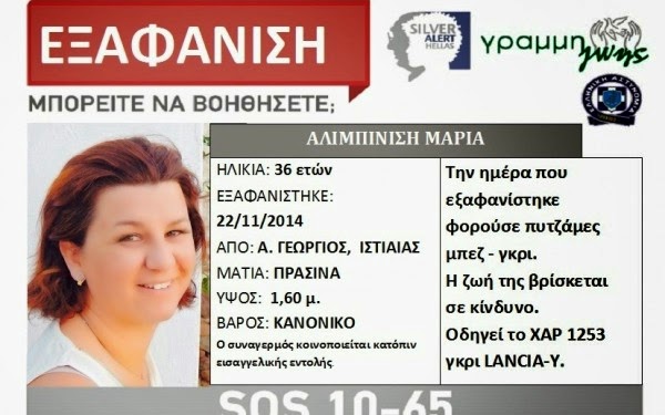 Μάλιστα, για την εξαφάνισή της, όλες αυτές τις ημέρες, κυκλοφορούσε και Silver Alert.