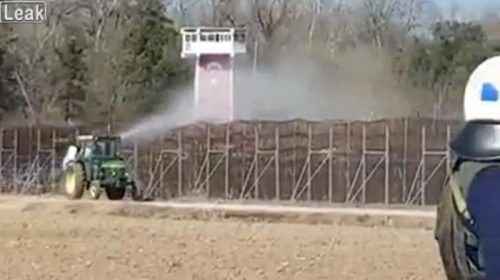 Ένας αγρότης στον Έβρο είπε να δώσει ένα χέρι βοήθειας πήρε το τρακτέρ του και άρχισε να ψεκάζει τους «εισβολείς» που προσπάθησαν να κόψουν τα σύρματα με αποτέλεσμα να τρέχουν δεξιά και αριστερά σαν τα ποντίκια για να γλυτώσουν.
